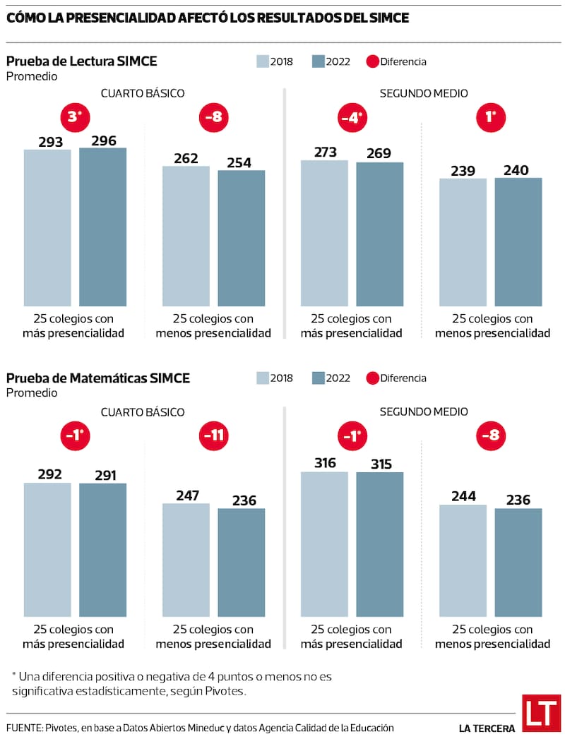 Ahora, con la presencialidad retomada y los resultados del Simce 2022 en mano, el debate continúa. La medición arrojó una caída de 10 puntos, en promedio, en comparación con la última prueba, realizada en 2018. La prueba también mostró que los segundos medios bajaron 12 puntos en matemáticas y todos los grupos socioeconómicos, salvo el alto, empeoraron su desempeño. Son los peores resultados en una década.
