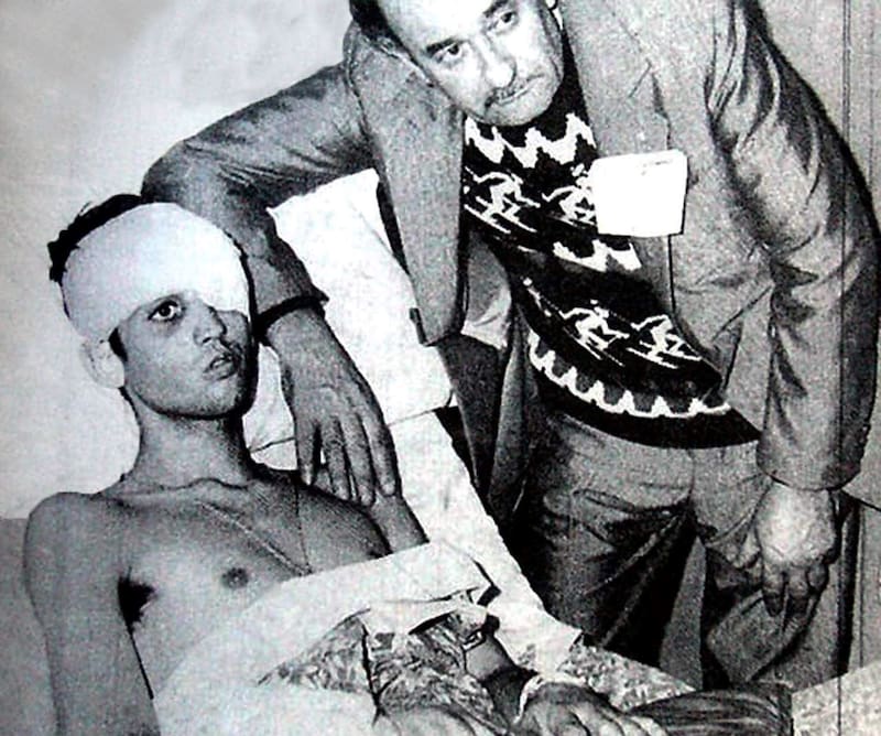 Durante ese enfrentamiento, una bomba lanzada por los británicos hirió a todo el pelotón de “Beto”. “Cuando explotó la bomba, me impactó en la frente, pero me protegió el casco. Entonces, empecé a sentir cómo la sangre iba pasando por mi rostro, hasta quedar inconsciente. Después de unas horas, llegaron otros compañeros a rescatarnos y nos llevaron al hospital en Puerto Argentino, para hacernos curaciones. Ya en ese punto no tenía idea dónde había quedado mi casco. Posteriormente, el 13 de junio, me regresaron al continente y me llevaron al hospital Comodoro Rivadavia, donde me hicieron una operación porque todavía tenía una esquirla dentro de mi cabeza. Lamentablemente la herida del impacto me produjo pérdida de masa encefálica en el hemisferio izquierdo, perdí el ojo izquierdo y quedé con parálisis en el lado derecho. Estuve internado 11 meses”, cuenta.