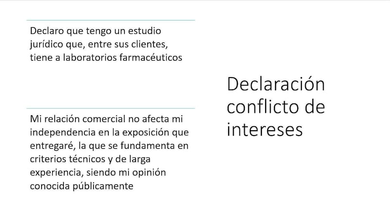 Pero en su rol como asesora en la tramitación de la ley de Fármacos 2, no existen registros de que se haya realizado ese ejercicio de transparencia ante los senadores y diputados antes de que se revelara la primera factura en marzo de 2022.