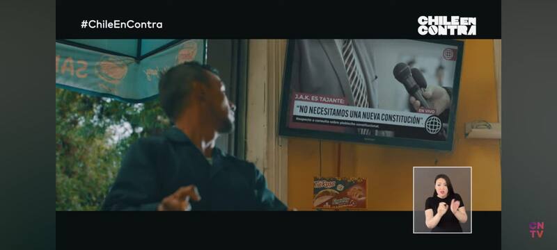Por ejemplo, la única alusión a la figura de José Antonio Kast en la franja es un segmento de menos de cuatro segundos en donde un hombre indicó sobre la propuesta de nueva Constitución que “ni siquiera los que la escribieron la quieren”. En ese momento se mostró en un televisor, que apareció en el fondo de la escena, una frase que dijo el líder republicano en una entrevista que concedió a La Tercera el 11 de diciembre de 2022: “J. A. K. es tajante: ‘No necesitamos una nueva Constitución’”.