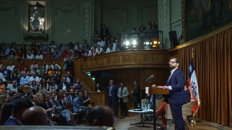Una fila de cuadras esperaba ayer en la Universidad Sorbonne de París al Presidente Gabriel Boric. En su última actividad de la jornada en la capital francesa, el Mandatario visitó esa casa de estudios, donde concedió una clase magistral en el icónico Anfiteatro Richelieu.
