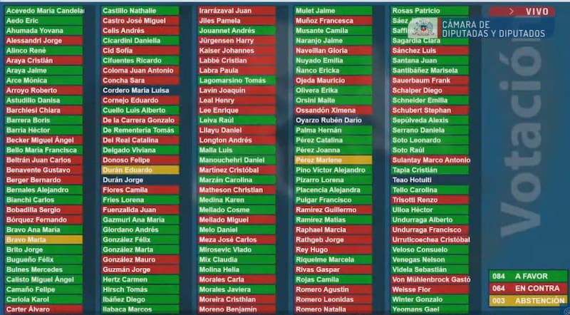 La votación en general de la reforma previsional fue aprobada con 84 votos a favor, 64 en contra y 3 abstenciones.