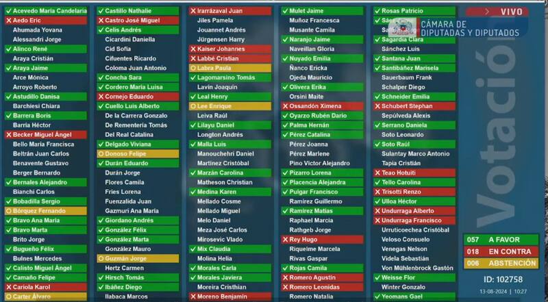 La reclamación, finalmente, fue aprobada por 57 votos a favor, 18 en contra y seis abstenciones. Los votos a favor fueron del oficialismo, los que estuvieron en contra se concentraron en la oposición -además Cariola y Eric Aedo (DC), quien es vicepresidente de la Cámara-, y las abstenciones se dieron en algunos diputados de Chile Vamos.