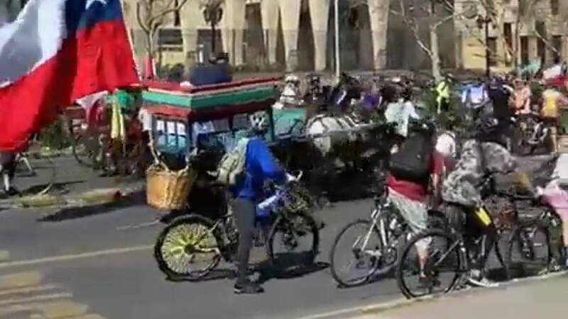 Sin embargo, minutos antes también estaba convocada una marcha de ciclistas, quienes tenían como punto de reunión la misma Plaza Baquedano. Carabineros cifró en cerca de 300 personas las que se reunieron en ese céntrico lugar y quienes tenían como objetivo recorrer varias comunas de la capital.