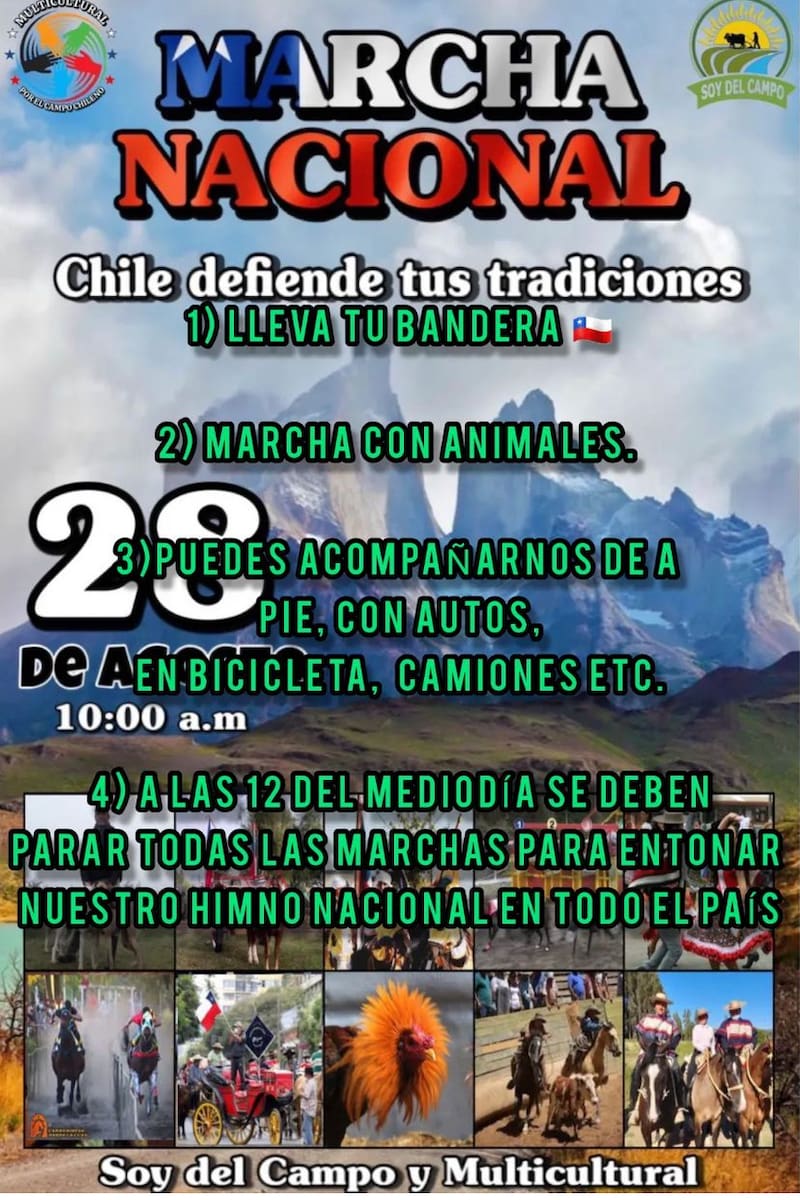 El recorrido en carretas fue convocado por la Fundación Soy del Campo desde el 10 de agosto, la cual se organizaba bajo el lema de “defensa de nuestras tradiciones”. La marcha estaba convocada a nivel nacional, por lo que tuvo encuentros en otras regiones también como una llamado a votar Rechazo en el plebiscito del próximo 4 de septiembre.