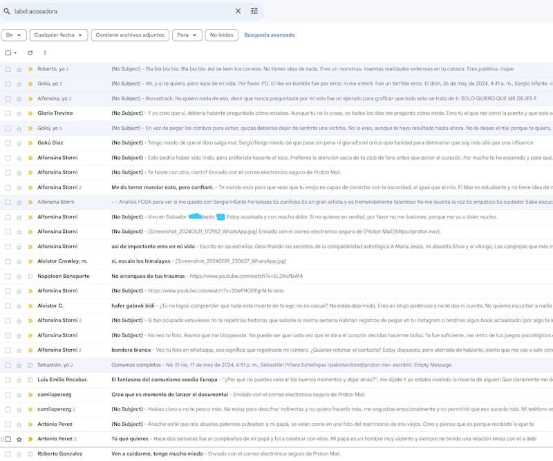 Acto seguido, se señala, y luego de su respuesta por WhatsApp, “el tono de los correos dejó de ser persuasivo y pasó a ser violento y ofensivo, y los correos fueron constantes hasta el 11 de diciembre, día en que la influencer le envió un pantallazo de una aplicación que le avisaba cuando mi representado abría sus correos”.