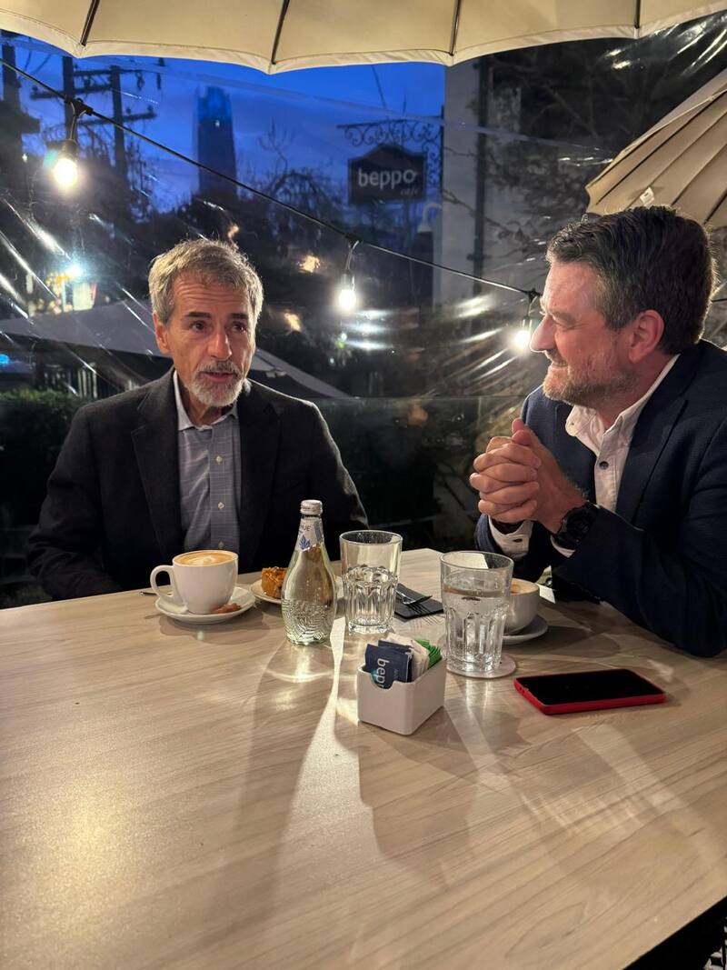 Tras el encuentro, Velasco, quien se desempeña como decano de la Escuela de Políticas Públicas de la London School of Economics, comentó que “este café tiene dos propósitos. Primero, es un reencuentro con un amigo muy querido, con quien hemos compartido batallas e ideales. Segundo, con toda claridad, espero que siga siendo el gobernador de la Región Metropolitana, porque ha hecho un trabajo admirable. A este país le hacen falta políticos serios y que saben hacer bien su pega, Claudio es un ejemplo estelar de eso, así que cuenta con todo mi apoyo”. El apoyo no se quedó solo en palabras, sino que, de acuerdo al entorno del gobernador, el exministro también ofreció ayudarlo en asuntos programáticos.