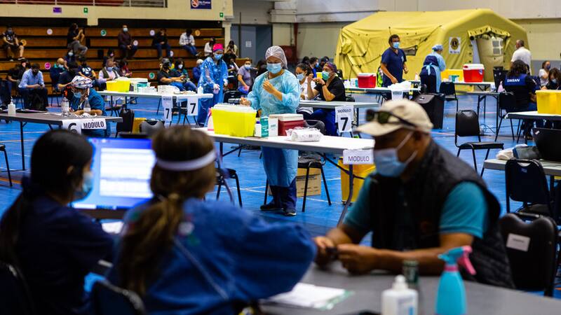 Son casi seis mil personas -enfermeras, técnicos, dentistas, médicos y matronas- las que a diario aplican las inyecciones contra el Covid-19 en la población beneficiaria. Están distribuidos en más de mil centros de inoculación, entre ellos colegios, estadios, estacionamientos e iglesias. Tras ella, existe una laboriosa cadena que comienza con el despegue de los charters que viajan a buscar las vacunas a China y que continúa con los camiones que las distribuyen a lo largo de todo Chile. Solo así, y con récords de hasta 413 mil dosis suministradas en 24 horas, se logró la meta, que llegó dos semanas antes de lo previsto.