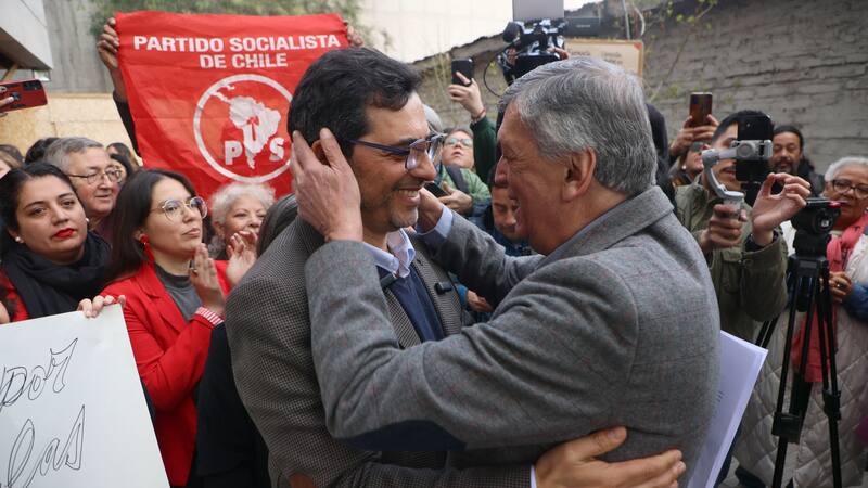 Pero en el acto de asunción faltaba el invitado principal: el presidente del PC, Lautaro Carmona, quien llegó una vez consumada la elección. Y quizás por ello es que el punto de prensa tomó tiempo en comenzar. Había que esperar al líder de la colectividad, quien abrazó efusivamente a Fares Jadue una vez se encontraron.