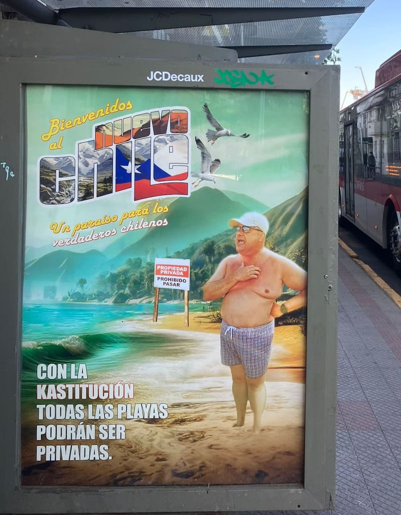 Por Cristóbal Fuentes“Con la Kastitución, todas las playas podrán ser privadas”: los ilegales afiches por el “En contra” que nadie se atribuye