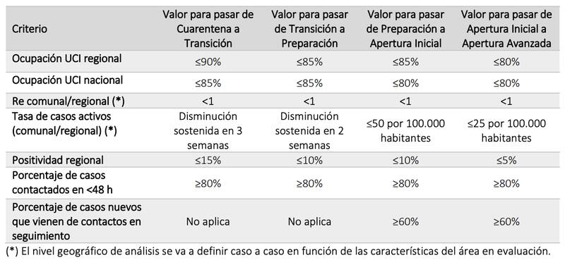 Y añadió: “Hay una diferencia con la positividad, ellos exigen menos de 10% y lo vamos a estudiar porque ya llegamos a 11% a nivel nacional (...). Con respecto a la proporción de casos nuevos que vienen de contactos en seguimiento, los vamos a agregar, ya que nosotros no los habíamos agregado en la etapa de transición. También vamos a agregar en la etapa de paso de transición a preparación la proporción de casos nuevos que vienen de contactos en seguimiento”.