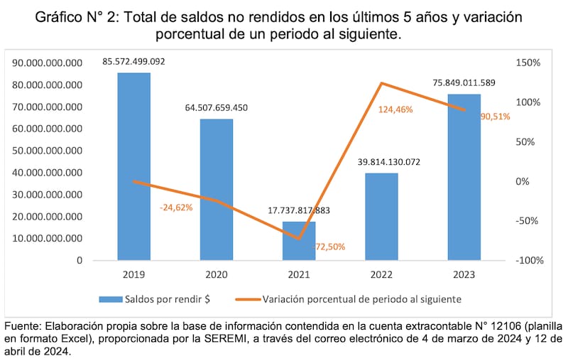 Uno de los antecedentes más llamativos del análisis realizado por Contraloría es que al 31 de diciembre del 2023 siete de las personas que recibieron recursos de la institución gubernamental están fallecidas y no rindieron un total de $ 33.821.505 que les fueron transferidos en recursos para la educación. La misma repartición, también tiene $ 977 millones que no han sido rendidos, de los cuales -según el informe- “la SEREMI desconoce quién debe ser la unidad que revisa, aprueba y/o rechaza la rendición de estos fondos, lo que no se aviene con el principio de control”.