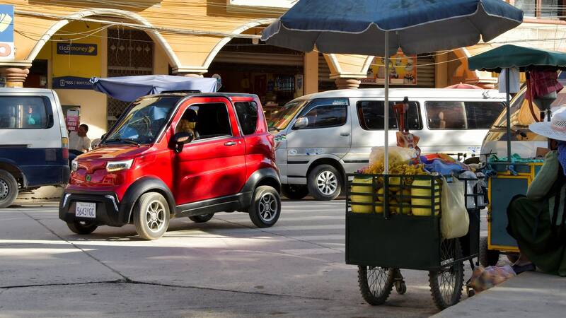 Un vehículo eléctrico fabricado en Bolivia alcanza una velocidad máxima de 56 kilómetros por hora y en él caben tres personas, “pero no pueden ser muy gordas”, dijo uno de sus usuarios. Puede enchufarse a cualquier toma de corriente, lo que elimina la necesidad de invertir en costosas estaciones de recarga y su precio, de US$ 7.500, lo hace mucho más asequible que los vehículos eléctricos más llamativos que circulan por las calles de Estados Unidos y Europa.