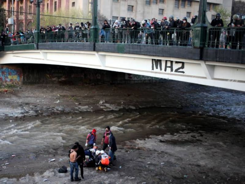 Según relató durante la indagación, “el imputado (…) se abalanzó en diagonal contra el adolescente, tomándolo con sus brazos, e impulsándolo, de tal forma que lo elevó sobre la baranda en cuestión, y lo hizo caer de cabeza hacia el río Mapocho”.