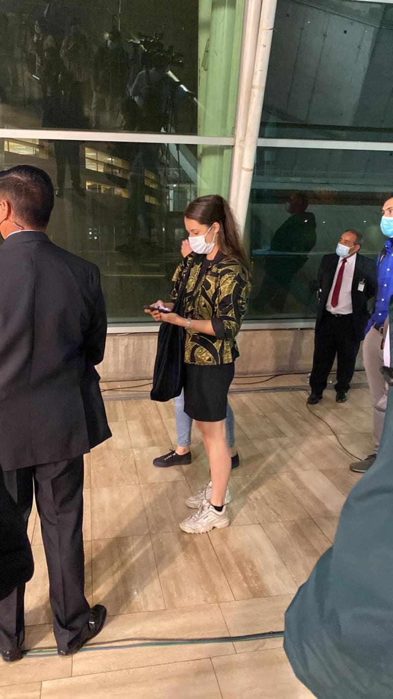 La antropóloga no compartió con el resto de los invitados de los candidatos presidenciales en el anfiteatro de TVN, sino que permaneció junto a otros dirigentes de su colectividad y cercanos a Boric, como Javiera Cabello y Nicolás Grau, en los camarines.