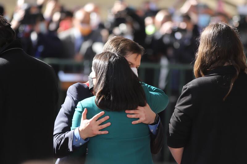 El gesto de los abrazos fue repetido por el Presidente con casi todos los parlamentarios, especialmente, con los miembros de bancadas oficialistas. Además, a la diputada RN Camila Flores, quien está en sus primeros meses de embarazo, Boric -con rostro emocionado- le dedicó algunas palabras.