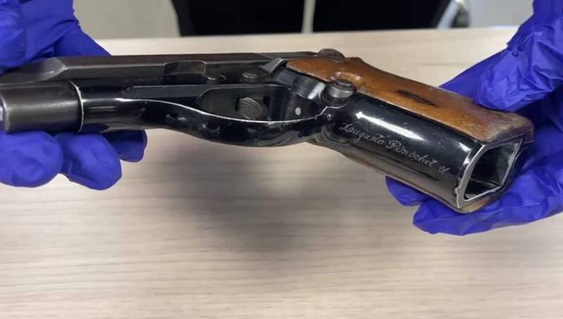 Fue en manos de una banda dedicada al tráfico de drogas en Valdivia que apareció la pistola marca Pietro Beretta, calibre 380. El grupo era investigado por haber atacado la casa de otro narcotraficante de la ciudad, sin embargo, al momento del arresto de diez de los integrantes de esta banda delictual, entre las pertenencias incautadas los policías identificaron que en esta peculiar arma había un grabado que decía: “Augusto Pinochet U.”.