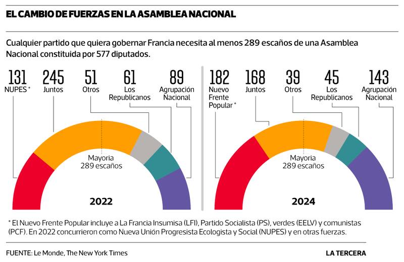 Fue el Nuevo Frente Popular (NFP) el que logró la hazaña de alejar del poder a Agrupación Nacional, cosechando sorprendentemente 182 diputados de una asamblea compuesta por 577 escaños.