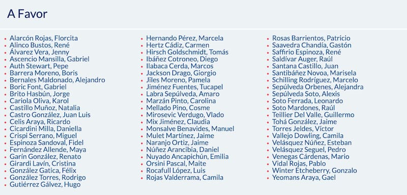 Entre el centenar de votos por apoyar la moción de remover a los magistrados se encontraban figuras, principalmente, de la oposición de aquel entonces. Entre ellos destaca el Presidente Boric, además de la ahora presidenta de la Cámara, Karol Cariola. También los ahora ministros Camila Vallejo y Maya Fernández, y el subsecretario del Interior, Manuel Monsalve. Asimismo, también apoyaron la acusación los exministros Giorgio Jackson y Marcela Hernando y quien ahora se desempeña como jefe de asesores, Miguel Crispi.