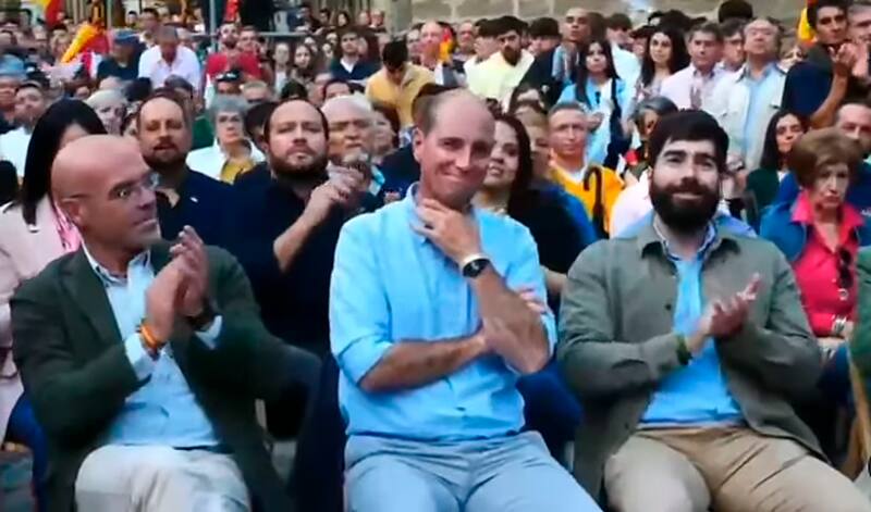 “Aprovecho para dar las gracias por su presencia, a Carlos Martín (Arrau), vicepresidente del Partido Republicano de Chile, donde están mostrándonos el camino de qué es lo que hay que hacer en la derrota del comunismo, en una reacción gigantesca y maravillosa que ha dado al Partido Republicano en Chile la victoria que nadie esperaba. Un partido del que somos amigos hace un tiempo”.