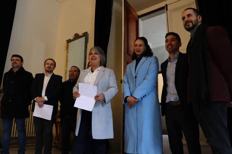 La medida a la que hizo referencia la vicepresidenta Tohá ha sido nombrada como “#Yoquieroelegir las pensiones de las FF.AA.” y fue impulsada por el jefe de bancada del PC, Luis Cuello, y por el diputado Juan Santana (PS). A ellos se han plegado otras autoridades, como los parlamentarios Andrés Giordano (RD) y Boris Barrera (PC), además del alcalde Felipe Muñoz (Estación Central, FA), Javiera Reyes (Lo Espejo, PC), Karina Delfino (Quinta Normal, PS) e Irací Hassler (Santiago, PC). Salvo esta última, todos marcaron presencia en La Moneda este lunes.