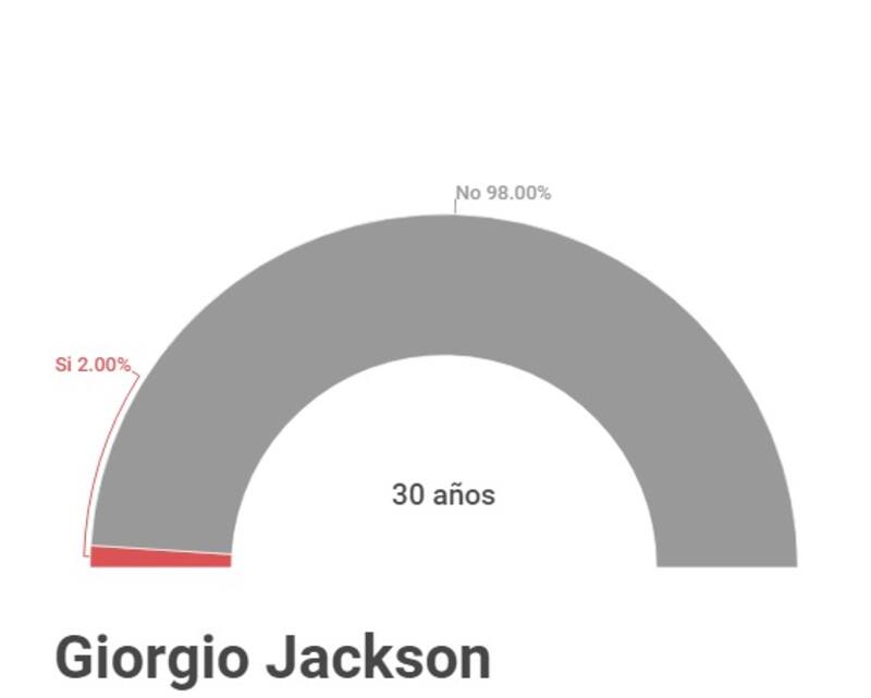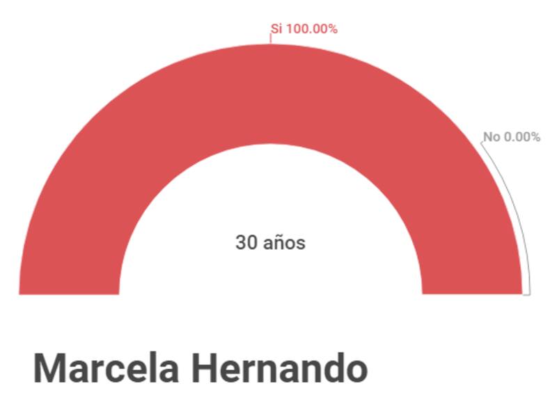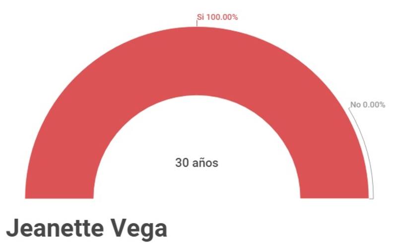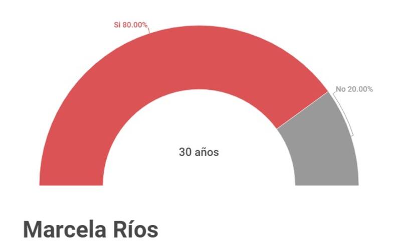 Pero lo cierto es que eso no fue impedimento para que en el segundo mandato de Bachelet, Vega volviera a participar de su administración, ahora como directora de Fonasa hasta 2018. Un 100% para la medición de los 30 años.