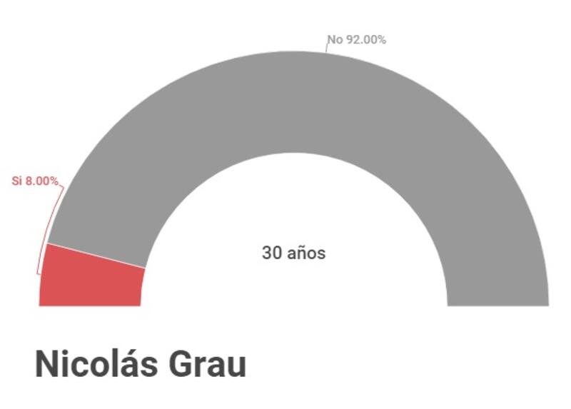 Hay varios antecedentes que demuestran que el ex presidente de la Fech en 2006, Nicolás Grau, quizás no debería estar en esta medición. El futuro Ministro de Economía es uno de los más estrechos colaboradores del presidente electo, Gabriel Boric, por años acusó a la Concertación de ser un proyecto neoliberal y es uno de los creadores del movimiento Nueva Izquierda Universitaria (NIU). Esa fuerza política sumada a su participación en la conformación del Frente Amplio, alejan a Grau de las administraciones de la Concertación y la Nueva Mayoría salvo por una cosa: es hijo de la ex vocera de Gobierno de Bachelet I y actual consejera del CDE, Paulina Veloso. Eso hace que, al menos, el nuevo ministro de Economía tenga un 8% en el termómetro de los 30 años.