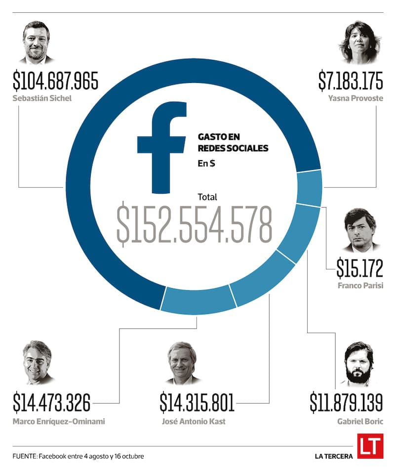 El candidato de Chile Podemos Más les otorga bastante importancia a las redes sociales si se observa el gasto de cada uno de los presidenciables publicado en el portal de Transparencia de Facebook entre el 4 de agosto y el 16 de octubre.