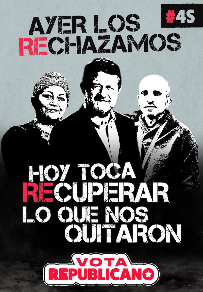 “Ayer los rechazamos, hoy toca recuperar lo que nos quitaron. Vota republicano”, dice la gráfica.