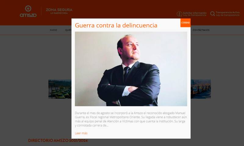 El martes, una imagen destacada en el sitio web de la Asociación de Municipalidades para la Seguridad Ciudadana de la zona Oriente (AMSZO) informaba el último fichaje del organismo: ni más ni menos que quien fuera hasta hace dos meses el fiscal regional de ese sector capitalino, Manuel Guerra Fuenzalida. “Durante el mes de agosto se incorporó a Amszo el reconocido abogado. Su llegada viene a robustecer aún más el equipo penal de Atención a Víctimas con la que cuenta la institución”, decía el “pop up” acompañado por una fotografía y un título “Guerra contra la delincuencia”.
