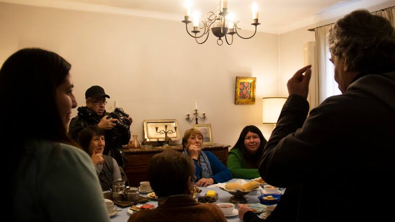 De acuerdo a los presentes, el encuentro entre la expresidenta y las vecinas de Quinta Normal se caracterizó por ser distendido. Prueba de ello, según cuentan, es que la grabación de la franja consideraba una extensión de 45 minutos, pero finalmente el desayuno duró cerca de una hora y media. Con espacio para selfies incluido. Además, según cuentan, una de las vecinas le hizo una invitación a la presidenta antes de que se fuera: que la próxima vez que pise Chile visite su puesto de empanadas en la feria, para comer juntas una segunda vez.
