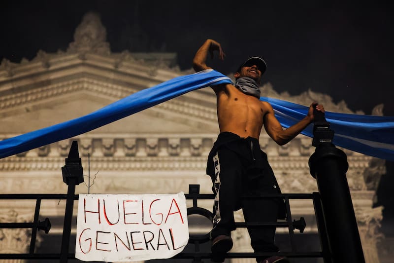 Nada más anunciado el superdecreto, se registraron numerosos cacerolazos a modo de protesta, tanto en la Capital Federal como en otros puntos del país. Medios trasandinos mostraron la llegada de un importante número de manifestantes a las afueras del Congreso, quienes prendieron bengalas, llevaron pancartas alusivas a un paro general y utilizaron la calle, sin que las fuerzas de orden aplicaran el recientemente estrenado “protocolo antipiqueteros”.