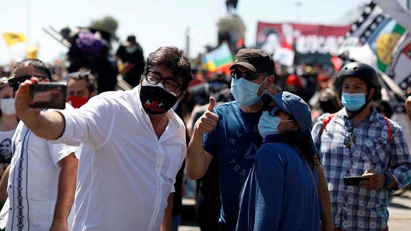 El alcalde rompió el protocolo Covid para saludar con un fuerte y largo abrazo a las diputadas Ana María Gazmuri (RD) y Marisela Santibáñez (PC), las invitadas nacionales al foro junto al secretario general del PC, Lautaro Carmona, y la diputada electa Lorena Pizarro. Tanto Gazmuri como Santibáñez fueron estrechas colaboradoras suyas en la campaña a la primaria presidencial de 2021.