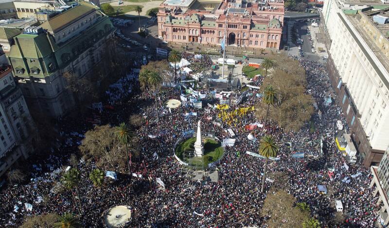 Desde la coalición gobernante, el Frente de Todos, se convocó a una marcha para este mediodía a cuadras de la Plaza de Mayo, bajo el eslogan “Todos con Cristina”. Finalmente la movilización desembocó frente a la Casa Rosada, y algunos la perciben como una muestra de “músculo político” del peronismo, en unas semanas particularmente difíciles para la vicepresidenta.