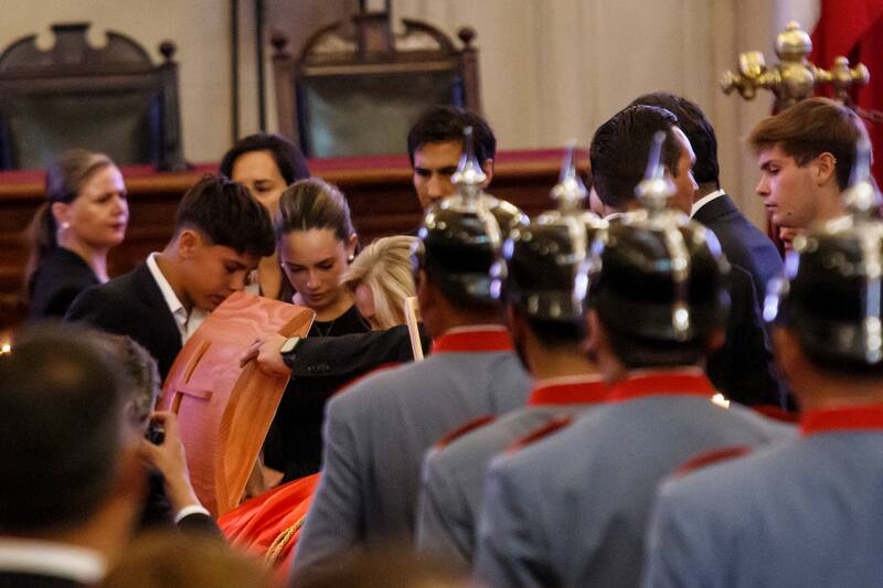 Los hijos fueron sentados en primera fila, con Morel en el centro, quien estaba flanqueada por sus dos hijas. Y, a los lados de cada una de ellas, se ubicaron los hijos del expresidente: Cristóbal y Sebastián. Más atrás estaban los hermanos como Pablo y Magdalena, quien estuvo con él en sus últimos momentos, ya que ella logró salvarse del accidente cuando cayó el helicóptero al agua.