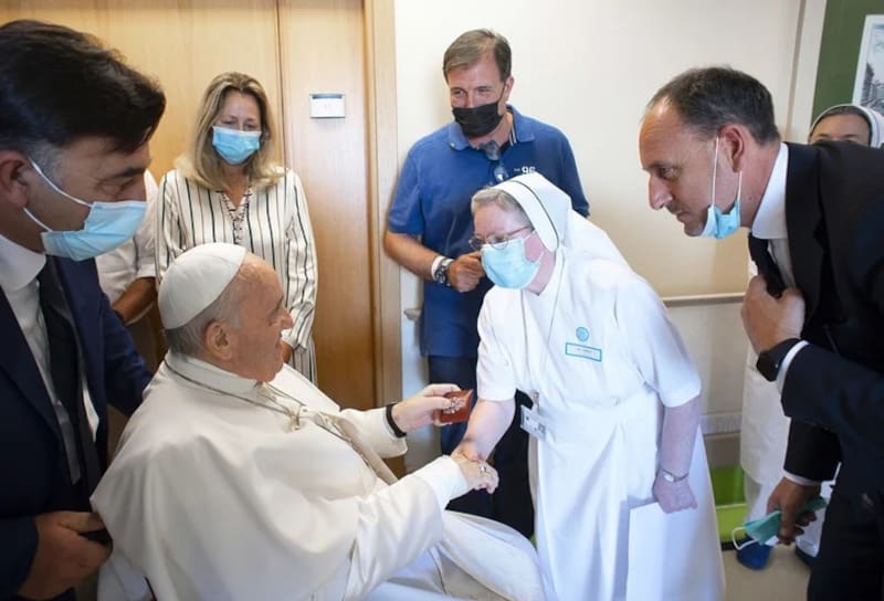 En agosto de 2021, el Papa indicó en una entrevista concedida a la radio española COPE que un enfermero le había “salvado la vida” durante la operación de colon a la cual había sido sometido el 4 de julio de 2021. “Me salvó la vida, un hombre de mucha experiencia. Es la segunda vez en la vida que un enfermero me salva la vida. La primera vez fue en el año 57″, dijo el pontífice refiriéndose a Strappetti, hoy de 53 años.