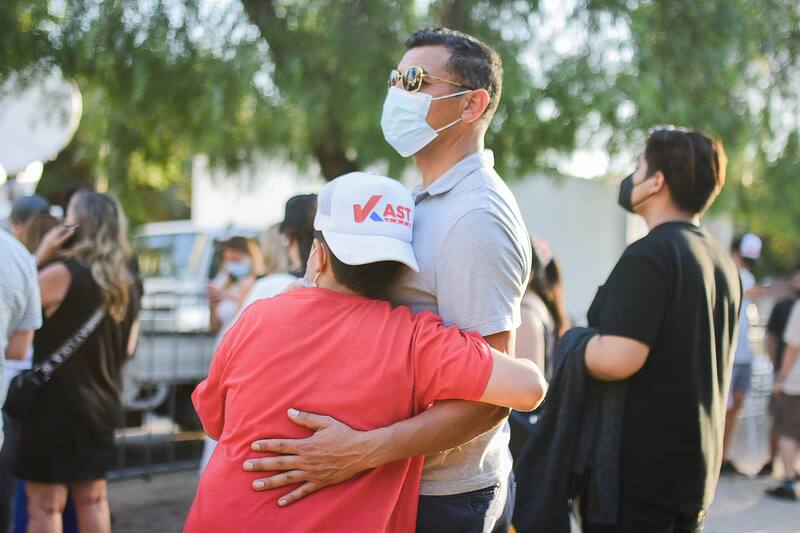 Una media hora después ya no quedan fans ni visitas y los más cercanos se quedan en el sitio baldío esperando el regreso del flamante derrotado. En el intertanto, su esposa ha repartido abrazos agradeciendo y consolando a parte del equipo. A su vuelta, solo un grupo cerrado del comando, familia y amigos, acompañan al matrimonio en la terraza VIP en una sesión de fotos de despedida mientras en las pantallas de más allá Boric da su primer discurso como presidente electo.