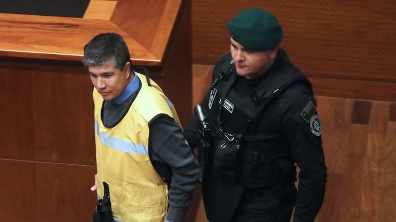 El exjefe civil de las policías reapareció con el chaleco amarillo que portan los imputados que están atravesando un proceso penal. Justamente una de las solicitudes de su abogado, el defensor penal público Víctor Providel, era que se le retirará dicha prenda y que no entrara esposado para evitar que las cámaras lo retrataran de ese modo.