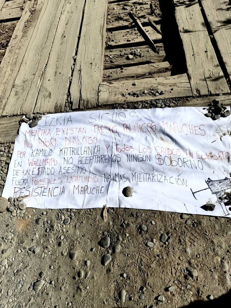 En paralelo a la preocupación política que alertó el incidente, la policía dio con la primera reivindicación de lo ocurrido. A pocos kilómetros de la Ruta R-50, en el puente Tricauco, fue hallado un vehículo incendiado y un panfleto: “Izkia Siches, mientras existan presos políticos mapuches, no habrá diálogo. Por Kamilo (sic) Katrillanca y todos los caídos en combate. En Wallmapu no aceptaremos ningún soborno de Estado asesino”, dice el mensaje.