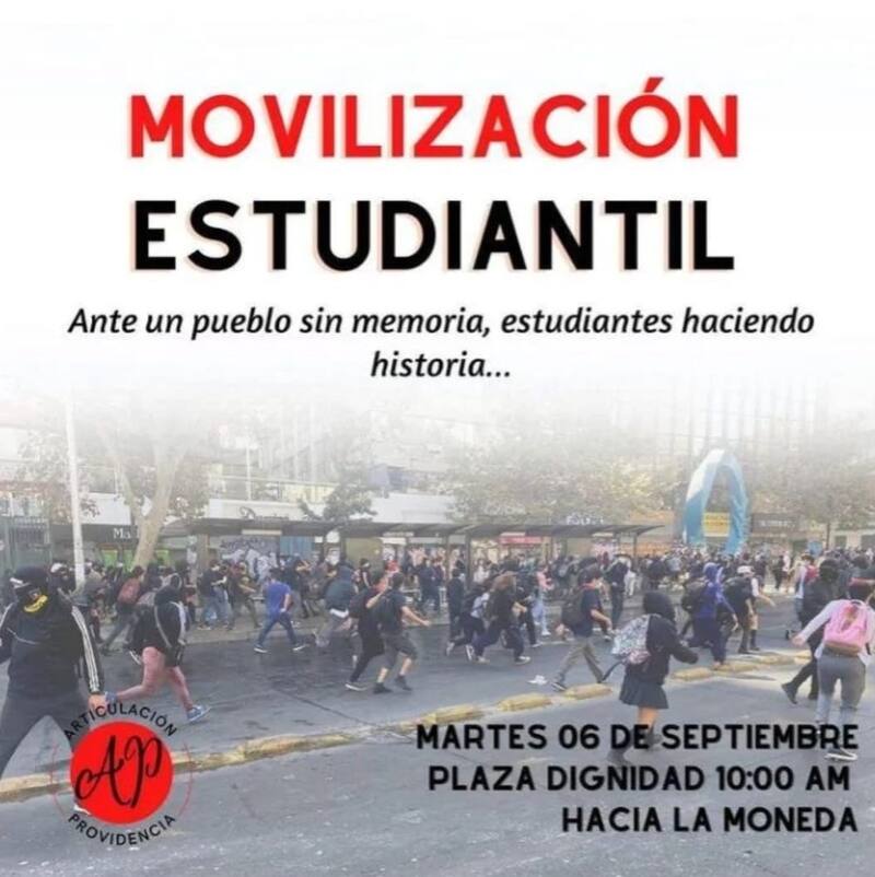 Una vez conocidos los resultados de plebiscito, la Articulación Providencia convocaba para este martes 6 de septiembre, a las 10 de la mañana, a marchar en dirección a La Moneda. “Movilización estudiantil: ante un pueblo sin memoria, estudiantes haciendo historia...”, rezaba el llamado que se difundió en redes sociales.
