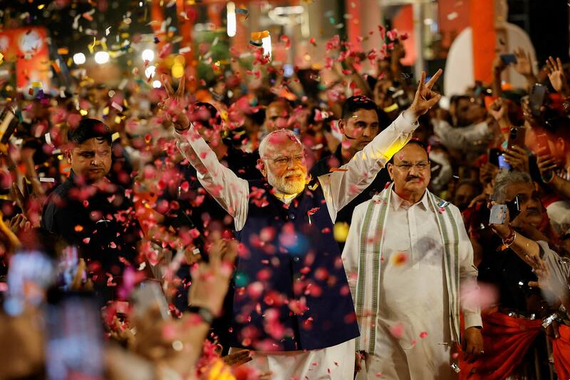 Pese a no conseguir la mayoría absoluta, el nacionalista Modi reivindicó su triunfo. India ha depositado su confianza en la coalición gobernante “por tercera vez consecutiva”, escribió en X el primer ministro indio, refiriéndose al Partido Bharatiya Janata (BJP, Partido Popular Indio) y sus aliados. “Continuaremos el buen trabajo realizado en la última década para seguir cumpliendo las aspiraciones del pueblo”, añadió.