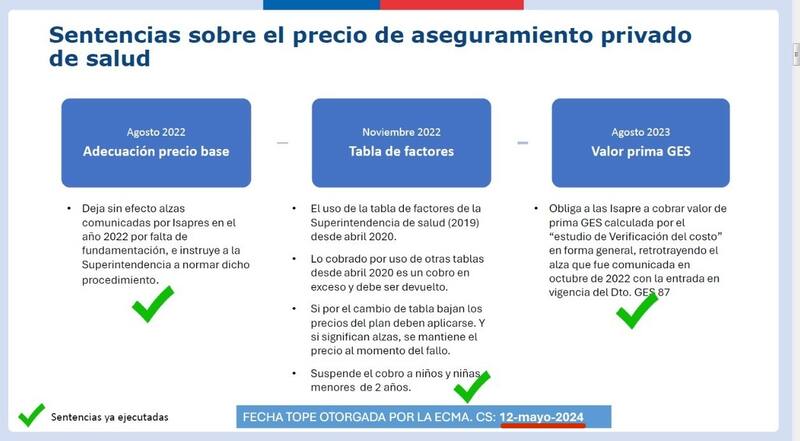 Según los plazos fijados por la Corte Suprema y que manejan en el Minsal, el 12 de mayo se cumple la fecha final para implementar el fallo que mandata a las isapres a aplicar la nueva tabla de factores y restituir los cobros en exceso. Por lo tanto, los parlamentarios están frente a un tiempo de tres semanas -15 días hábiles- para despachar el proyecto conocido como ‘ley corta’ que viabiliza la sentencia. El tiempo apremia y el trabajo, a pesar de los múltiples nudos que aún quedan por desatar, es a contrarreloj.