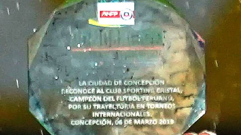 “La ciudad de Concepción reconoce al Club Sporting Cristal, campeón del fútbol peruano, por su trayectoria en torneos internacionales. Concepción, 06 de marzo de 2019″, decía el galardón que recibió el cuadro estudiantil. La pieza en su parte superior contenía el logo de la ANFP, tapando el grabado original de la Municipalidad de Concepción. El momento fue captado por la transmisión televisiva y, consecuentemente, por los internautas. En un par de segundos, se viralizó.