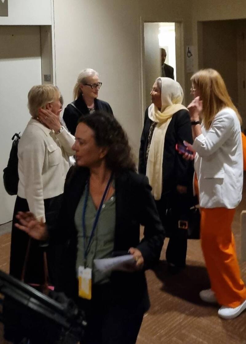 Al mismo tiempo, mientras el Jefe de Estado estaba a minutos de dicha intervención, la galardonada actriz Meryl Streep (Los puentes de Madison, El diablo viste a la moda, entre otros) se preparaba para hablar ante la prensa internacional respecto de la situación que afecta a las mujeres en Afganistán.
