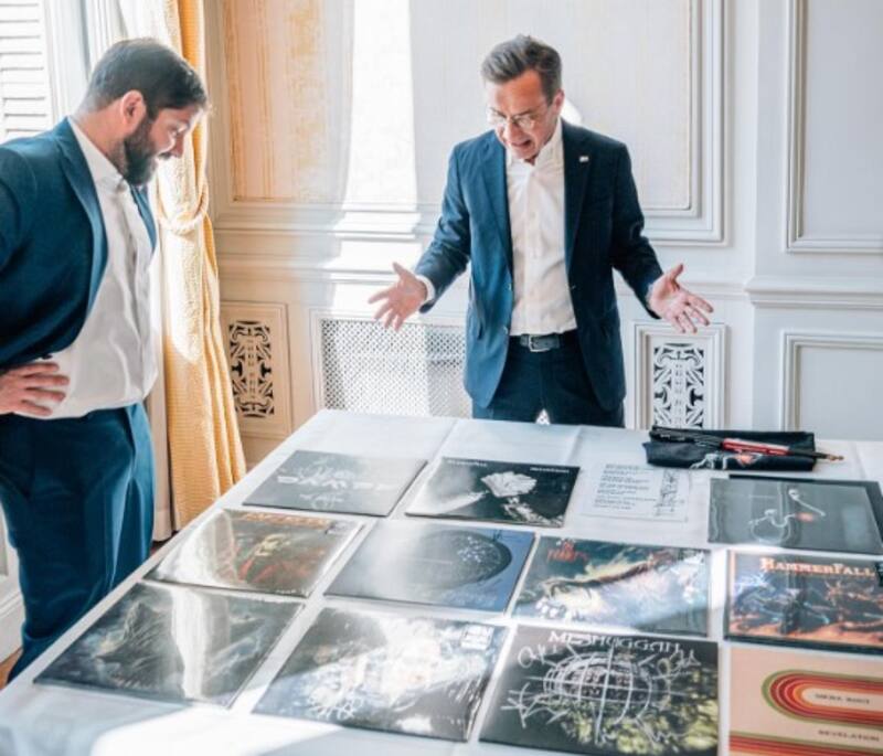 Eso sí, en Estocolmo tuvo un premio de consuelo: el primer ministro, Ulf Kristersson, le regaló una colección de vinilos de bandas de rock suecas.