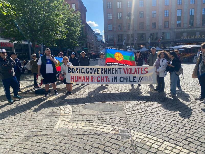 Ese mismo martes, en Berlín, un grupo de chilenos llegó hasta la Fundación Ebert para “abogar por los presos de la colonización”. En Estocolmo, Suecia, le ocurrió algo similar: a las afueras de la Sala de Conciertos de esa ciudad -donde entregan los premios Nobel- un grupo pequeño de chilenos desplegó un lienzo que decía “el gobierno de Boric viola los derechos humanos en Chile”.