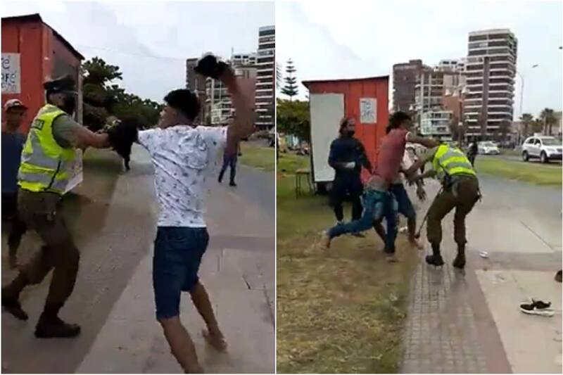 Pero no fue por la pancarta, sino por un hecho registrado horas más tarde en la playa Cavancha. Ahí, funcionarios de Carabineros realizaron un control a dos personas extranjeras que supuestamente se encontraban vendiendo drogas.