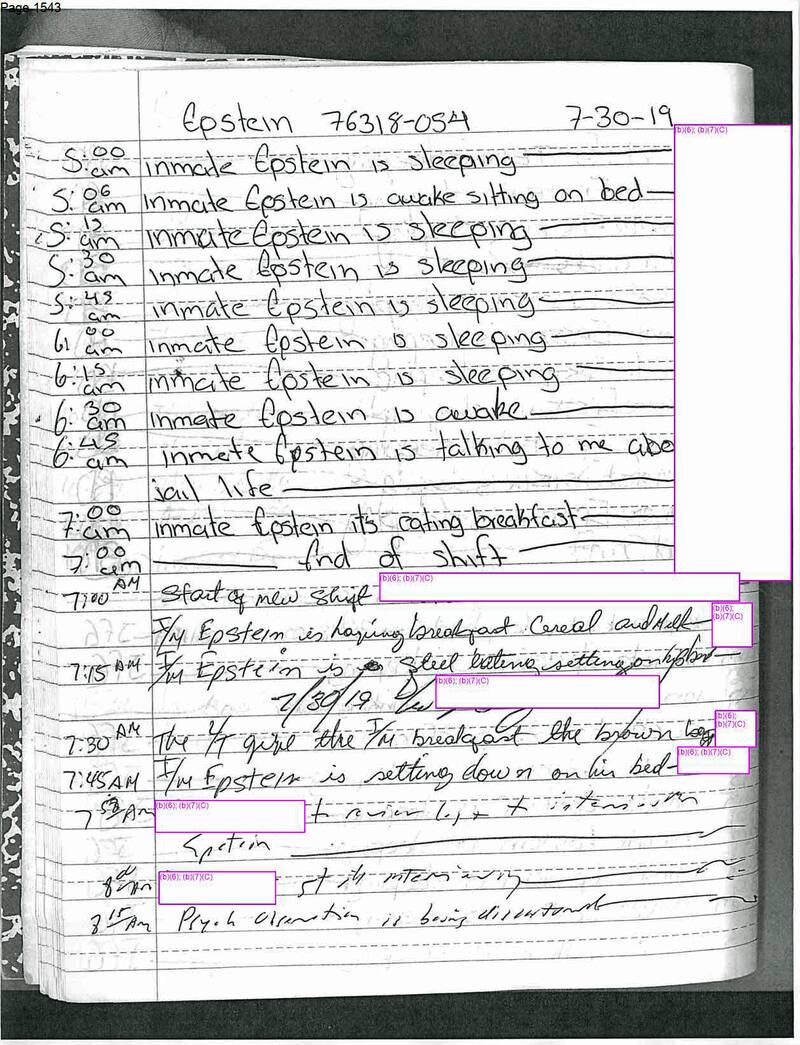 Epstein sobrevivió y sus lesiones no requirieron que fuera hospitalizado. Fue puesto en observación de suicidio y posteriormente en observación psiquiátrica. Los oficiales de la cárcel anotaron en los registros que lo observaron “sentado al borde de la cama perdido en sus pensamientos” y “con la cabeza contra la pared”. Epstein expresó su frustración por el ruido de la cárcel y la falta de sueño. Durante sus primeras semanas en el Metropolitan Correctional Center, Epstein no tenía el aparato de apnea del sueño que solía usar.