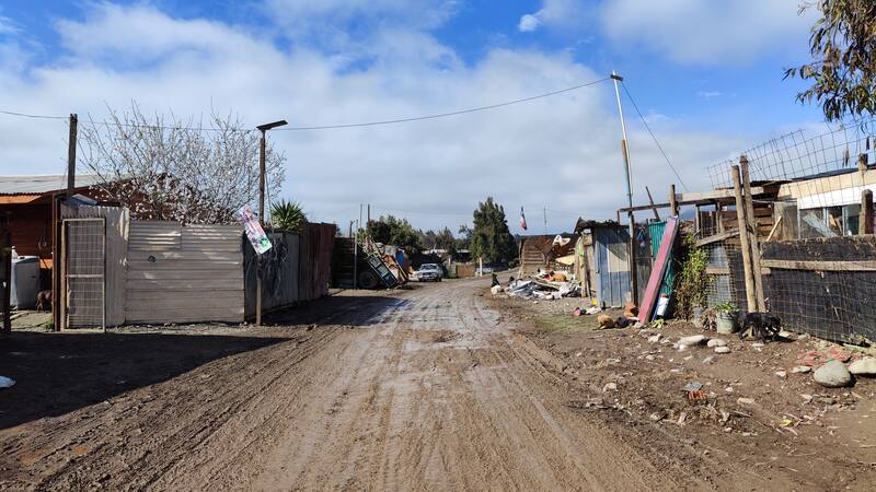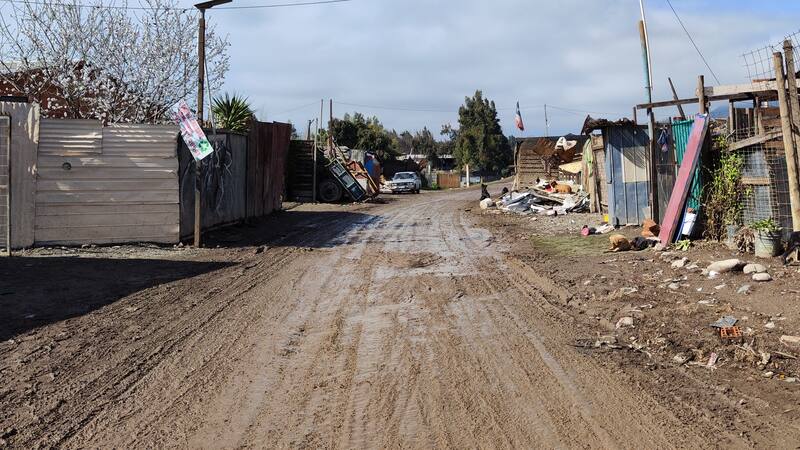 Entre sus calles -llenas de pozas de agua y barro, producto de las últimas lluvias- viven alrededor de 180 familias, muchas de las cuales se dedican a la extracción de áridos del mismo río. Se trata de un terreno que desde hace 40 años es usado como campamento. Allí, frente a un depósito de chatarra, vive María Isabel Cifuentes (52).