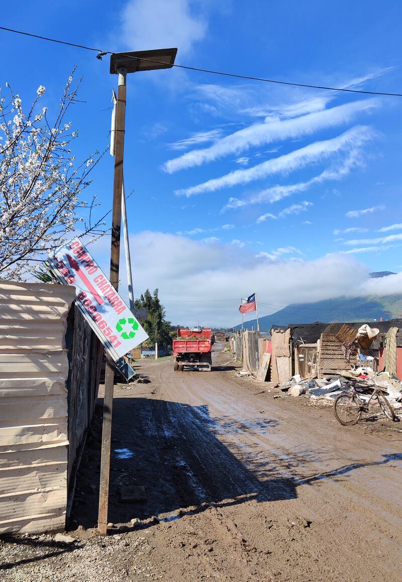 Juan Machuca, otro de los vecinos del campamento, recuerda que él mismo tuvo que mezclar el cemento e instalar algunos de los postes. “Vinieron, me dejaron el poste, un saco de cemento y el foco. Me acuerdo que hasta tuve que conseguir una herramienta para atornillar la luz arriba del poste”, afirma. Hoy muestra con decepción cómo el foco solar que está fuera de su mediagua no funciona.